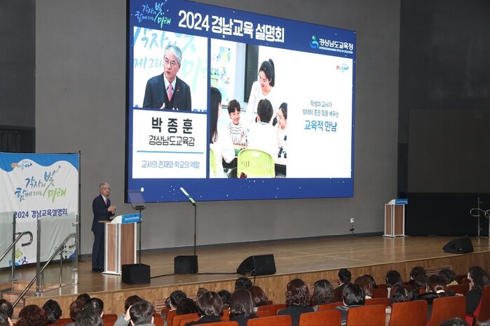 이날 오전 ‘각자의 빛, 함께 그리는 미래’라는 주제로, 교직원과 학부모 등 500여 명이 참석한 가운데 ‘2024년 경남교육 설명회’가 열렸다.