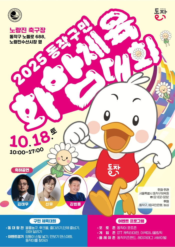 [시민일보 = 여영준 기자] 동작구(구청장 박일하)는 오는 18일 오전 10시 노량진축구장(노들로 688)에서 ‘2025 동작구민 화합 체육대회’를 개최한다고 밝혔다.