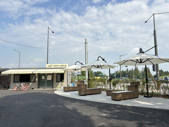 [시민일보 = 박소진 기자] 서울 서초구(구청장 전성수)의 양재천 자전거 수리센터가 편의시설과 휴게시설을 접목한 ‘서초 자전거 스테이션’으로 재탄생했다.