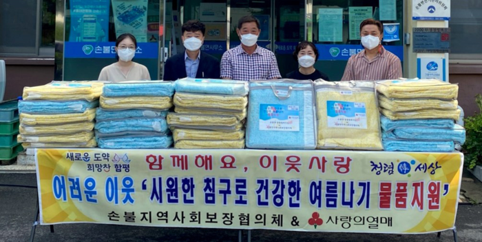 [함평=황승순 기자] 함평군 손불면 지역사회보장협의체(민간위원장 백형갑)가 혹서기를 맞아 지난 19일 취약계층 80가구에 4백만원 상당의 여름이불 세트를 전달했다.