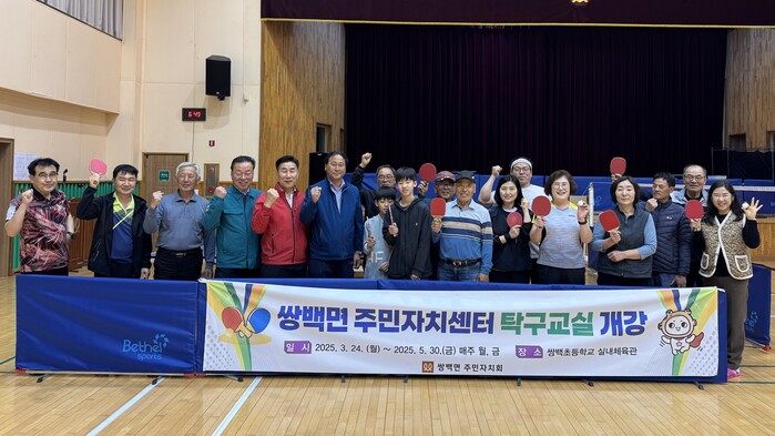 이번 탁구교실은 이성옥 전문 강사의 지도하에 3월 24일부터 5월 30일까지 매주 월요일, 금요일 18시 30분부터 20시 30분까지 쌍백초등학교 실내체육관에서 진행된다. 기본기부터 실전 경기까지 단계적으로 배울 수 있어 주민들의 체력 증진과 친목 도모에 큰 도움이 될 것으로 기대된다.
