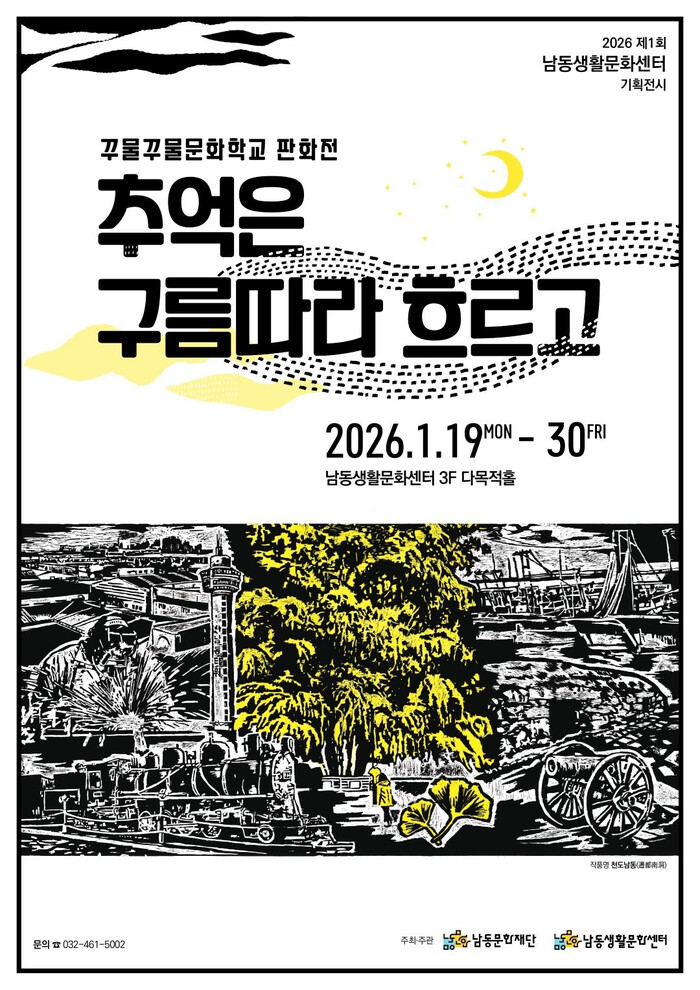 [인천=문찬식 기자] 인천 남동구 남동문화재단은 남동생활문화센터에서 기획전시로 ‘추억은 구름따라 흐르고’ 판화전을 개최한다고 전했다.