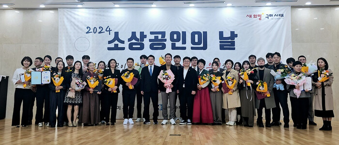 [구미=박병상 기자] 구미시(시장:김장호)와 구미상공회의소(회장:윤재호)는 지난 8일, 14시에 본 회의소 2층 대강당에서 윤재호 회장, 김장호 구미시장, 강명구 국회의원, 김상현 구미세무서장, 최재윤 한국폴리텍대학 구미캠퍼스 학장, 이명기 중소벤처기업진흥공단 경북지역본부장, 임택규 신용보증기금 구미지점장, 유승호 소상공인시장진흥공단 구미센터장을 비롯한 기관단체장, 상공의원, 지역 소상공인단체 및 업체 등 220여명이 참석한 가운데 2024 구미시「소상공인의 날」을 개최했다.