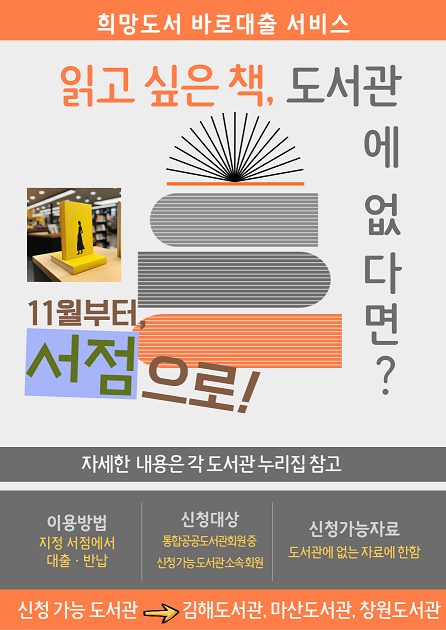 도서관서 읽고 싶은 책 없을 시 매월 1인 2권 서점에서 대출․반납 가능