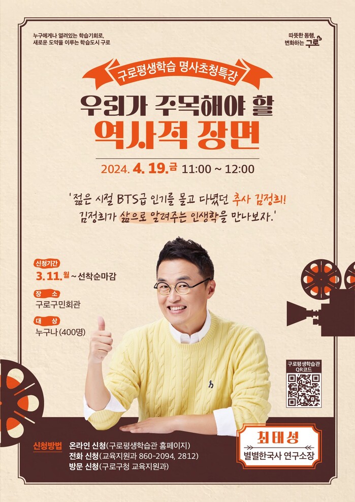강의는 4월 19일 오전 11시 구로구민회관에서 진행되고, 수강료는 무료다.