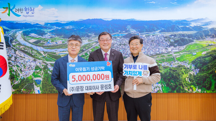 김윤철 합천군수는 “어려운 이웃들을 위해 따뜻한 나눔을 실천해주셔서 감사드리며, 소중한 성금은 도움이 필요한 이웃에게 잘 전달되도록 하겠다.”고 감사의 마음을 전했다.