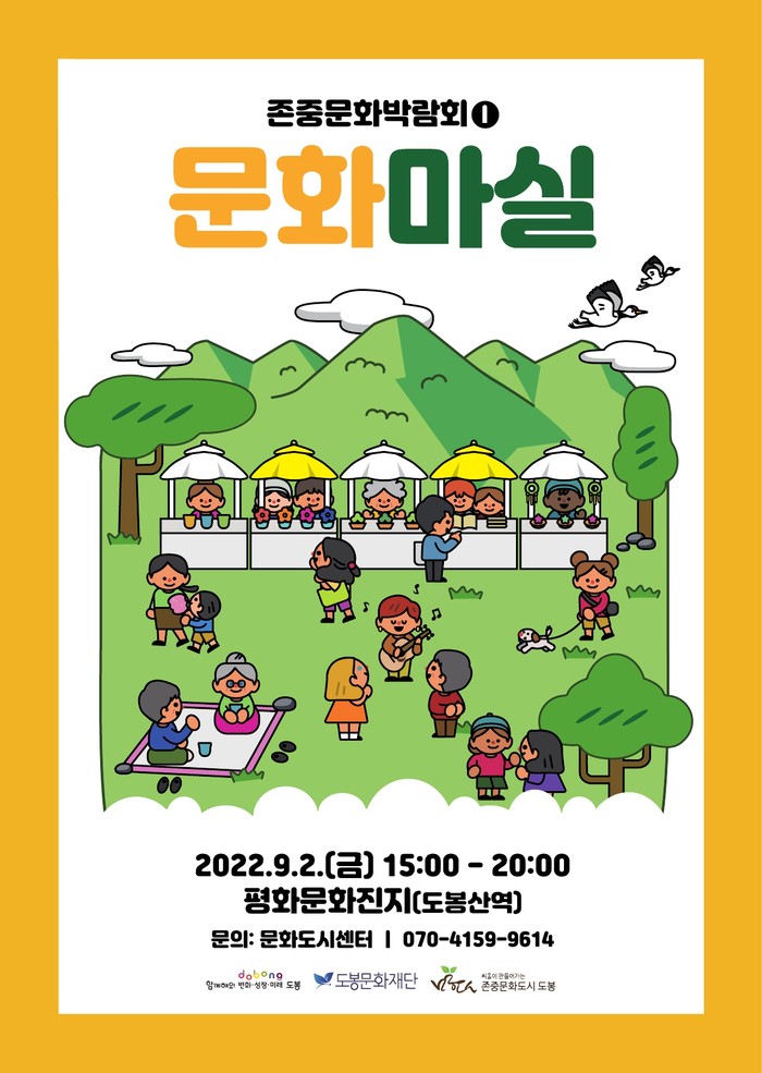 [시민일보 = 박준우 기자] 도봉문화재단 문화도시센터는 주민 간 만남과 연결의 장을 위한 존중문화박람회Ⅰ'문화마실'을 오는 9월2일 평화문화진지에서 오후 3시부터 8시까지 진행한다.