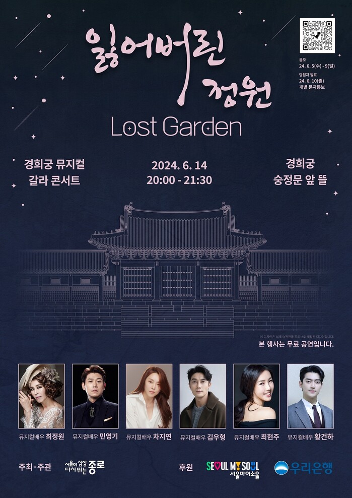 지역주민과 함께하는 문화유산 보호·활용 의지를 널리 알리고, 이를 기념해 국내 최정상급 뮤지컬 배우가 대거 출연하는 경희궁 뮤지컬 갈라콘서트 ‘잃어버린 정원’을 선보이는 자리다.