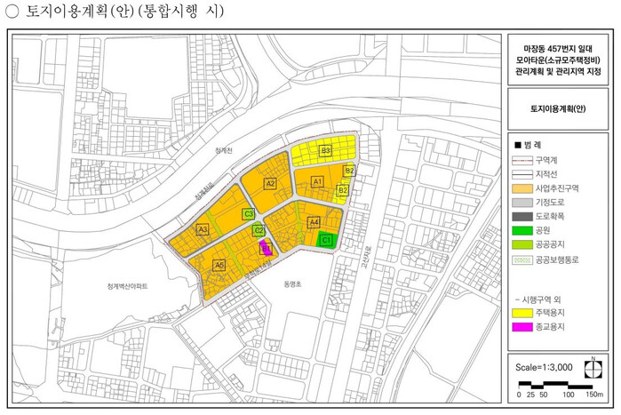 마장동 457번지 일대는 모아타운 선정 후 5개 구역으로 통합 시행하는 계획이 수립됐으며, 12월 26일 관리계획 승인 고시를 통해 ‘소규모주택정비 관리지역’으로 지정됐다.