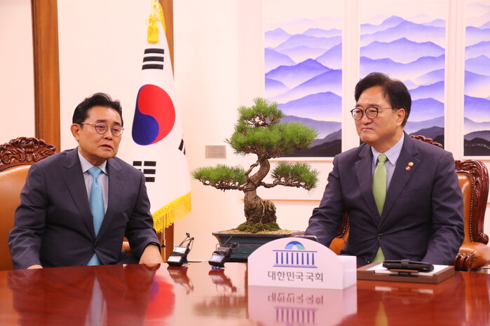 이에 대해 우 의장도 "국회 전반기는 2년 동안 큰 선거가 없기 때문에 개헌이 적기"라며 "개헌을 다 열어놓고 하자는 입장"이라고 화답했다.