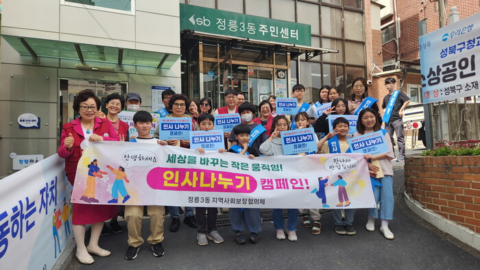 [시민일보 = 변은선 기자] 서울 성북구(구청장 이승로) 정릉3동 지역사회보장협의체가 마을에 작지만 선한 영향력을 끼치고 있다. ‘이웃사촌’이라는 말이 실감 나도록 매년 인사 나누기 캠페인을 펼치며 이웃 사랑을 몸소 실천하고 있다.
