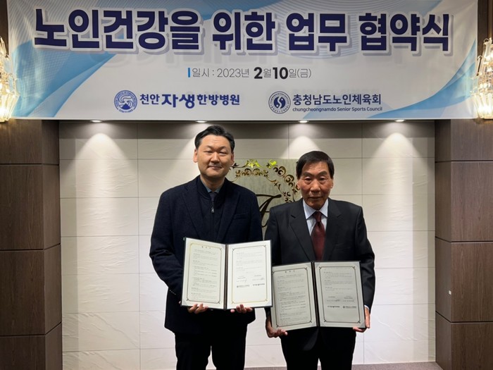 [시민일보 = 홍덕표 기자] 천안자생한방병원은 최근 충청남도노인체육회와 노인건강을 위한 업무협약(MOU)을 맺었다고 13일 밝혔다.