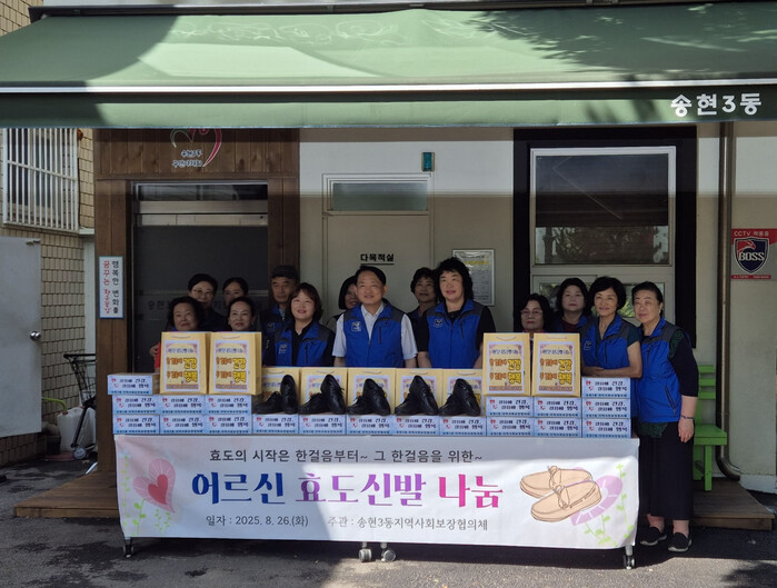 [인천=문찬식 기자] 인천 동구 송현3동 지역사회보장협의체(민간위원장 이재전)는 지난 26일 취약계층 어르신들을 대상으로 '효도신발 나눔행사'를 진행했다고 밝혔다.