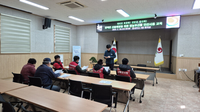 이번 교육에는 산불기동감시원 4명과 파쇄전담인력 2명이 참석했으며, 파쇄기 안전 작동 요령, 작업 단계별 안전수칙 준수, 파쇄기 상·하차 시 사고 예방 등 실무 중심의 안전교육이 진행됐다.