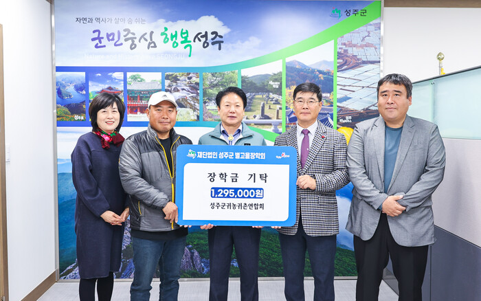 [성주=박병상 기자]경북 성주군은 지난 8일 성주군귀농인연합회(회장 김경민)에서 지역인재 육성을 위한 장학기금 130여만원을 (재)성주군별고을장학회에 기탁하였다고 밝혔다.