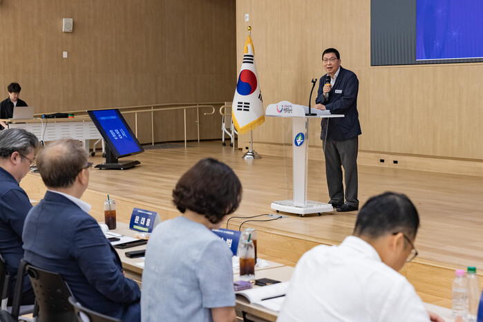 | ▲ 김경호 구청장이 환영사를 하고 있다. (사진=광진구청 제공) |
