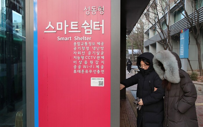 | ▲ 성동형 스마트쉼터 이용 모습. (사진=성동구청 제공) |
