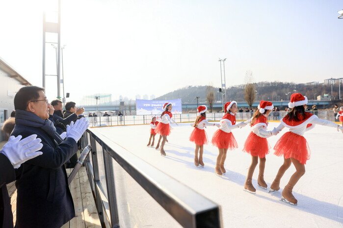 [시민일보 = 이대우 기자] 서울 구로구가 26일 안양천 어린이 스케이트장 개장식을 개최했다.