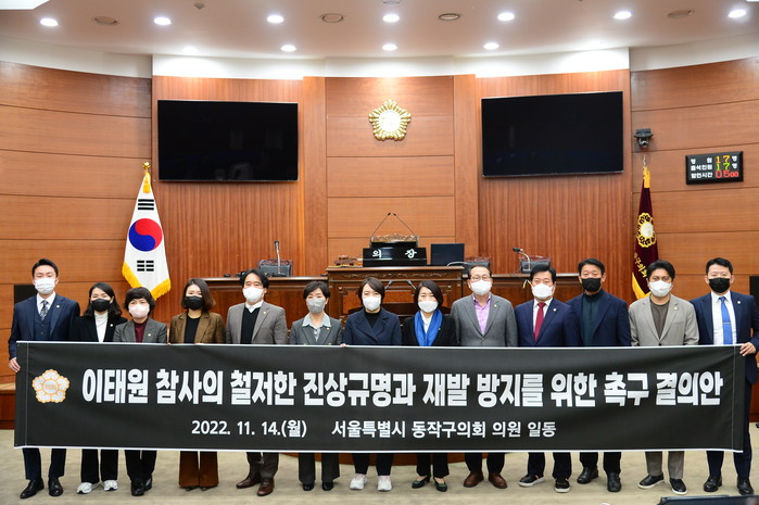 [시민일보 = 여영준 기자] 서울 동작구의회(의장 이미연)가 지난 14일 열린 제325회 제2차 정례회 제1차 본회의에서 ‘이태원 참사의 철저한 진상규명과 재발방지를 위한 촉구 결의안’을 채택했다.