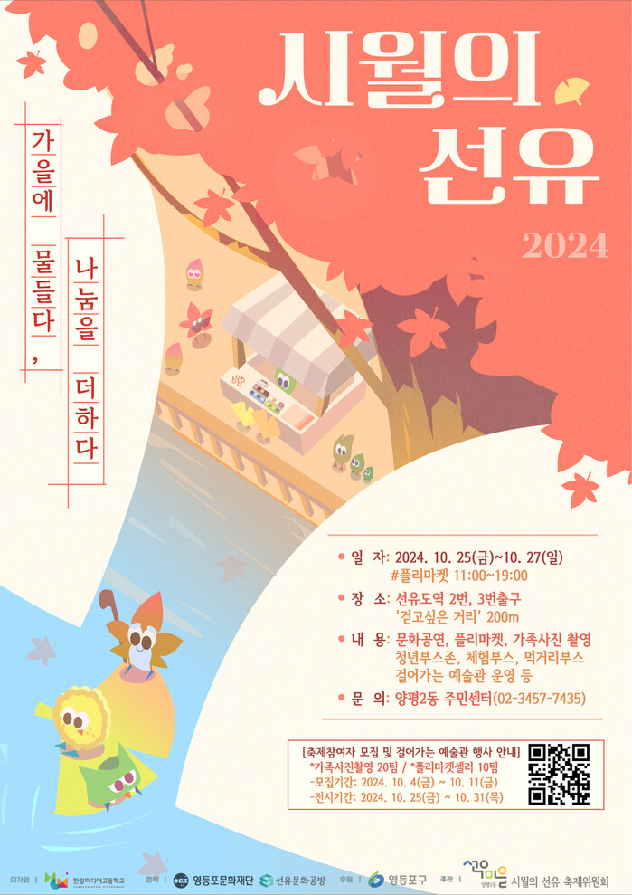 구에 따르면 메인 무대인 선유도역에서 선유도공원을 잇는 ‘걷고 싶은 거리’에서는 양평2동 대표 마을축제인 ‘시월의 선유’ 축제가 열린다.