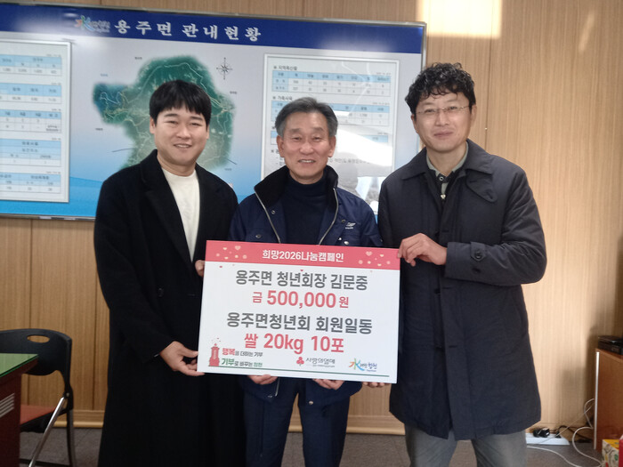 김문중 신임 청년회장은 “지역 주민들의 축하와 응원에 보답하고자 청년회 회장으로서 첫 걸음을 나눔으로 시작하고 싶었다”며 “작은 나눔이지만 지역사회에 온기를 전할 수 있기를 바라며, 앞으로도 청년회가 지역 공동체의 든든한 주체로서 역할을 다하겠다”고 밝혔다.