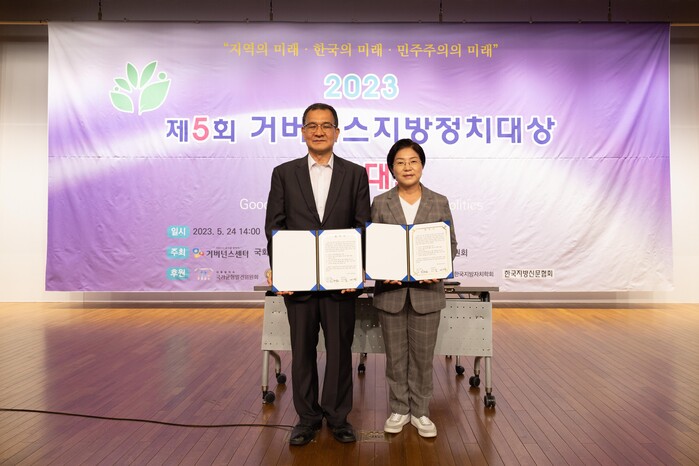 거버넌스센터가 주최하고 대통령직속국가균형발전위원회, 대한민국시장군수구청장협의회 등이 후원하는 거버넌스지방정치대상은 거버넌스 패러다임에 기반한 올바른 자치분권 활동 발굴과 확산에 기여한 단체 등에 수상한다.