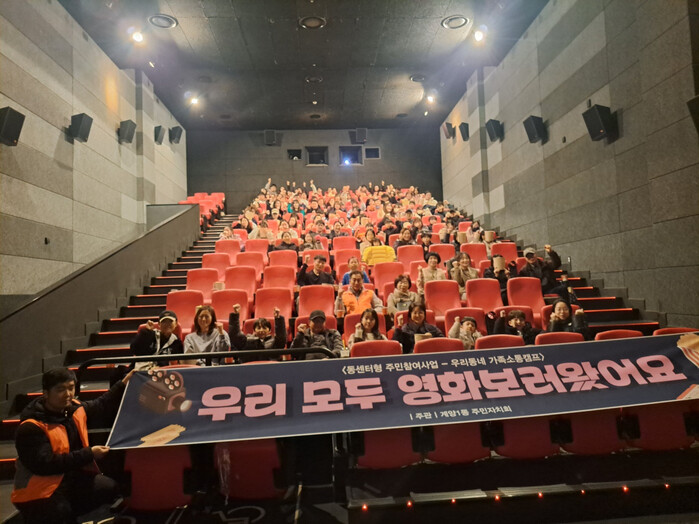 [인천=문찬식 기자] 인천 계양구 계양1동 주민자치회(회장 성영환)는 지난 5일 계양CGV에서 지역 주민들과 함께 ‘우리동네 가족소통 캠프 – 영화 관람 행사’를 진행했다.