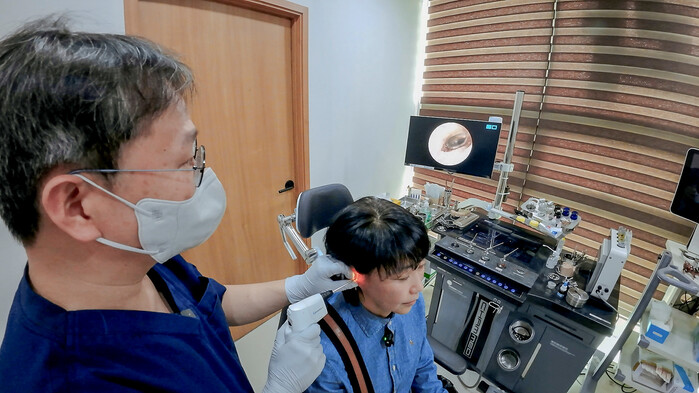 | ▲ 양천구와 협약을 맺은 이비인후과에서 청력정밀검사 중인 구민의 모습. (사진=양천구청 제공) |