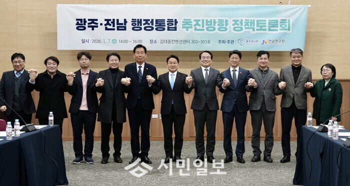 [광주=정찬남 기자] 광주연구원(원장 최치국)과 전남연구원(원장 김영선)은 7일 오후 김대중컨벤션센터에서 광주·전남 행정통합 추진 필요성에 대한 사회적 공감대를 확보하고 성공적 통합 방안을 모색하기 위해 ‘광주·전남 행정통합 추진 방향 정책토론회’를 개최했다.