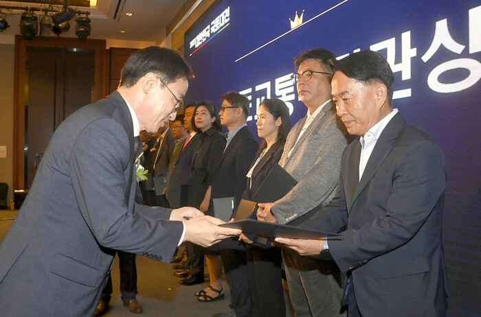 | ▲ 이성헌 구청장이 ‘2023 대한민국 국토대전’에서 경관행정(협업) 부문 최고상인 국토교통부 장관상을 수상하고 있다. (사진=서대문구청 제공) |