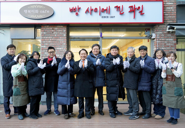 | ▲ 지난달 22일 열린 행복이화카페 ‘빵 사이에 낀 과일’ 오픈식 (사진=서대문구청 제공) |
