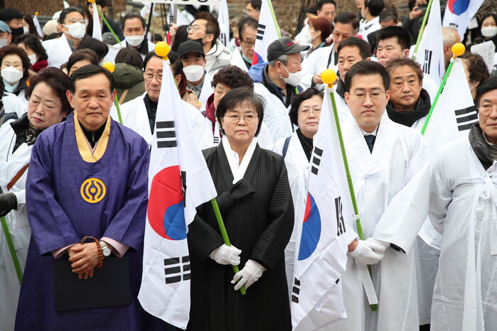 | ▲ 2023년 진행된 '3.1독립운동 기념행사'에 참여한 이순희 구청장(앞줄 가운데)을 비롯한 내빈들과 시민들. (사진=강북구청 제공) |