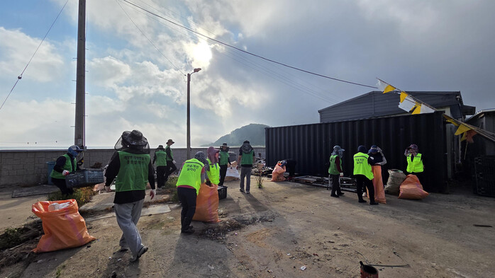 이번 행사는 대청면사무소 주관으로 지역 주민, 공무원 등 약 50여 명이 참여한 가운데 진행되었으며, 폐그물과 밧줄, 플라스틱 용기를 포함한 각종 생활·어업 폐기물 약 50톤을 수거했다.