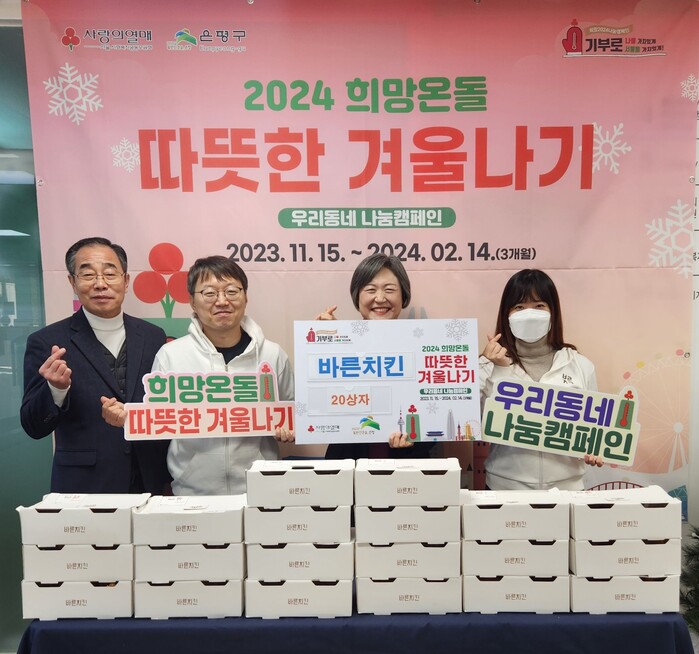 [시민일보 = 이대우 기자] 서울 은평구(구청장 김미경) 갈현제2동 주민센터는 ㈜이루에프씨 바른치킨과 2024 희망온돌 따뜻한 겨울나기 성품 전달식을 최근 개최했다고 밝혔다.
