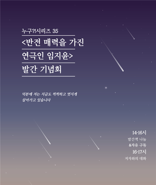 이 책은 (사)한국장애예술인협회에 발간한 2024 장애예술인 스토리텔링 북 ‘누구 시리즈 35’의 주인공 지체장애 연극인 임지윤의 자전 에세이 신간이다.