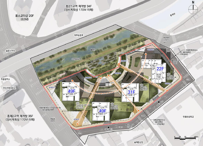 주요 내용을 살펴보면, ▲홍제천 복원을 중심으로 한 친환경 수변도시 조성 ▲지상 최고 49층 규모의 주상복합단지 건립 ▲문화·복지·업무시설 유치 등을 주요 내용으로 한다.