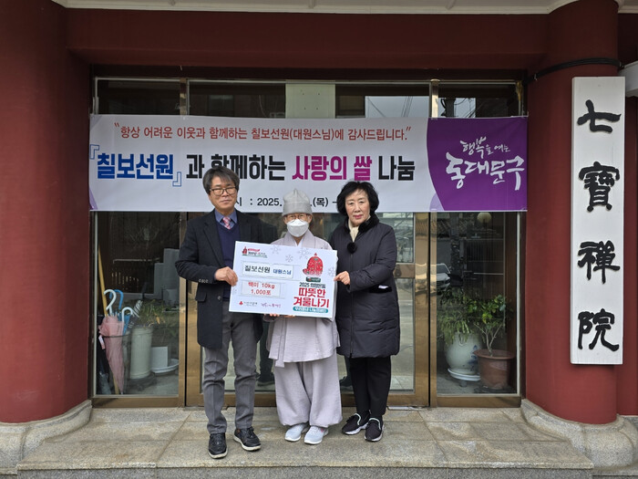 이날 진행된 기탁식에는 정일영 답십리2동장, 칠보선원 대원스님, 신복자 서울시의원이 참석했다. 기탁된 백미는 동주민센터(전농1·2동, 답십리2동 장안1·2동)를 통해 저소득 취약계층에게 전달될 예정이다.
