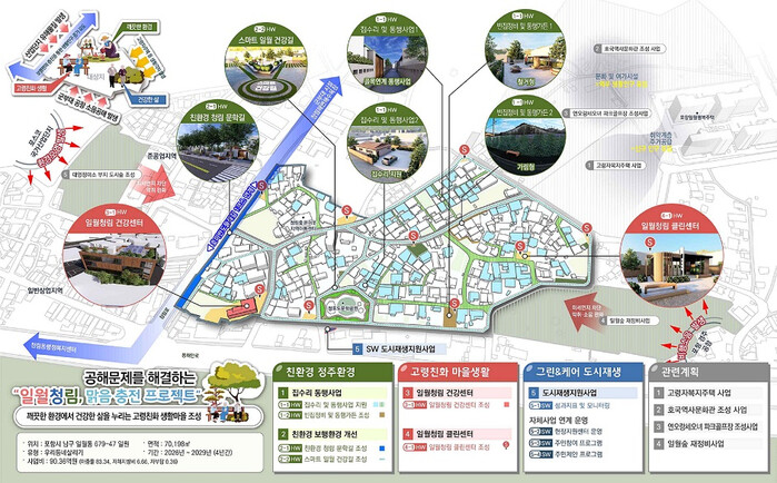이번 공모에 선정된 포항시 남구 일월동에는 빈집 정비 및 집수리 동행 사업과 보행환경 개선사업, 건강센터를 조성하고, 예천군 용궁면은 집수리 및 안심골목 정비, 커뮤니티 공유마당 조성, 용궁 청춘 마실 등을 조성한다.