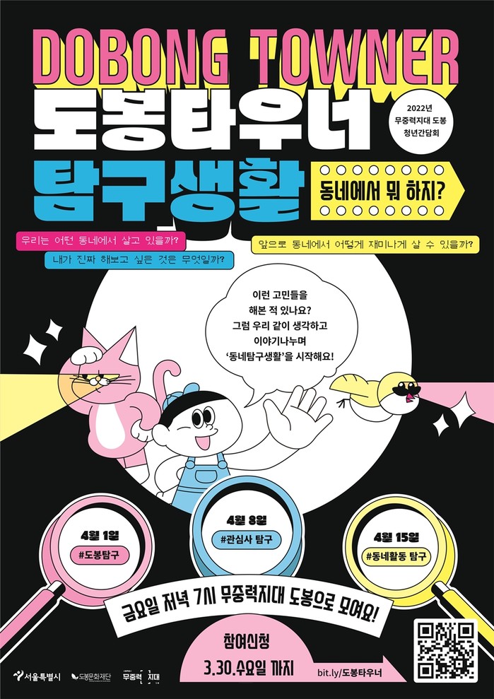 | ▲ 무중력지대 도봉, 청년간담회 「도봉타우너 탐구생활: 동네에서 뭐 하지?」 포스터 (사진제공=도봉구청) |