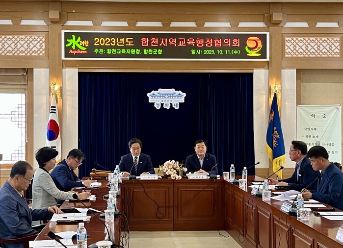 합천교육행정협의회는 합천교육지원청 교육장과 합천군수가 공동의장으로, 관계공무원 및 합천군교육발전위원회 이사 등 총 9명으로 구성돼 지역사회와 교육발전을 위한 협력사항을 논의하고 다양한 정책들의 연계 및 협력 추진을 통해 지역의 교육발전에 기여하는 역할을 한다.