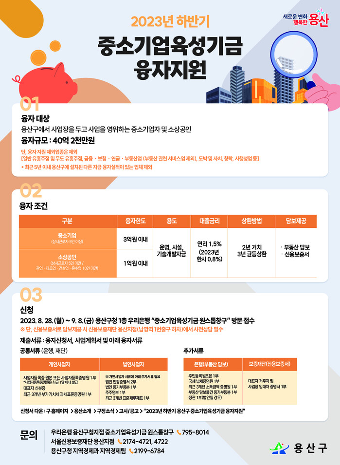 | ▲ 2023년 하반기 중소기업육성기금 융자 지원 안내문. (사진=용산구청 제공) |
