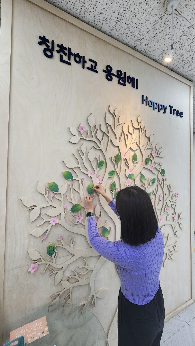 18일 구에 따르면 해피트리는 여권안내 데스크 옆 벽면에 벽화형 트리 형태로 설치됐으며, 주민들이 행정 서비스와 직원에 대한 칭찬과 격려의 메시지를 나뭇잎 모양 카드에 작성해 부착할 수 있도록 구성됐다. 누구나 자유롭게 참여 가능하며, 남겨진 메시지는 향후 행정 서비스 개선에 활용될 예정이다.