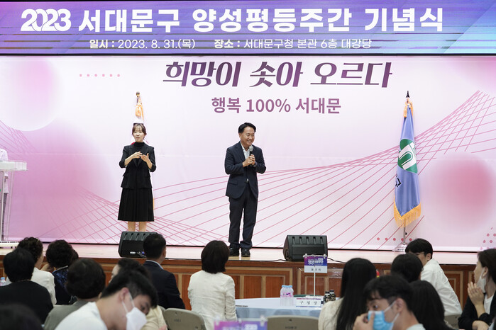 [시민일보 = 홍덕표 기자] 서울 서대문구(구청장 이성헌)가 제28회 양성평등주간을 맞아 최근 구청 대강당에서 ‘함께 일하고 함께 돌보는 행복 100% 서대문!’을 주제로 양성평등주간 기념식을 개최했다.
