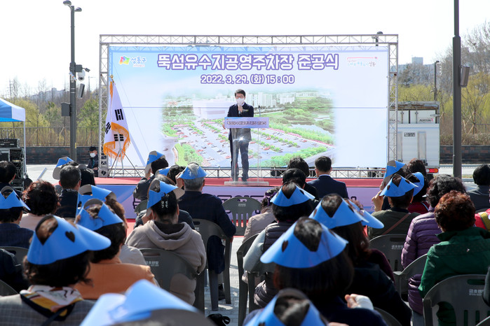 29일 뚝섬유수지 공영주차장 준공식에 참석한 정원오 성동구청장은 “이번 주차장 조성 사업은 국비와 시비를 확보하며 전국에서 높은 경쟁률을 뚫고 선정된 만큼 주민들에게 꼭 필요한 사업으로, 정부와 서울시, 구 일부 토지를 우리 소유로 교환하는 작업과 정부 소유 토지 사용 승낙 등 주차장 조성을 위해 수개월에 걸쳐 많은 노력들이 있었다”고 말했다.