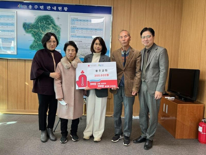 이에 김필선 용주면장은 “지역 내 나눔을 실천해 주신 용주교회 목사님과 신도들에게 감사드리며, 기부한 성금은 어려운 이웃을 위해 소중히 사용하겠다”고 감사의 인사를 전했다.