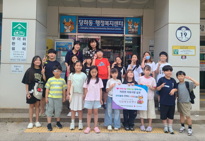 이미숙 당하동장은 “아이들의 마음이 담긴 후원금을 전달해 주신 다함께돌봄센터에 감사드리며, 지역 내 꼭 필요한 이웃들에게 그 마음을 잘 전달하겠다”고 감사 인사를 전했다.
