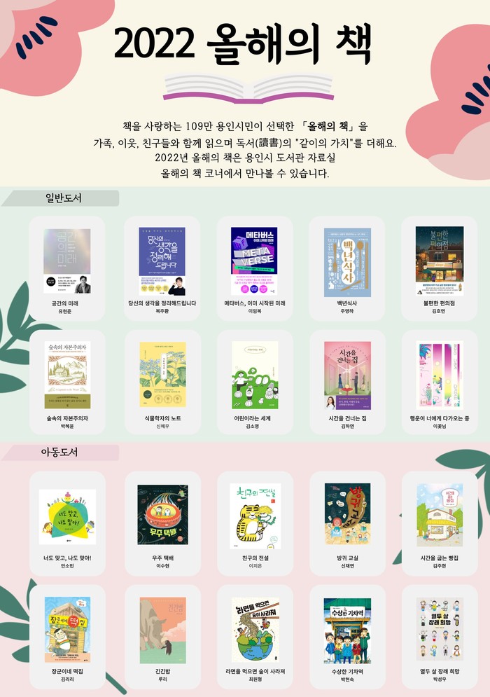 [용인=오왕석 기자] 1만여 명의 용인시민들이 뽑은 ‘2022년 용인시 올해의 책’ 20권이 선정됐다.