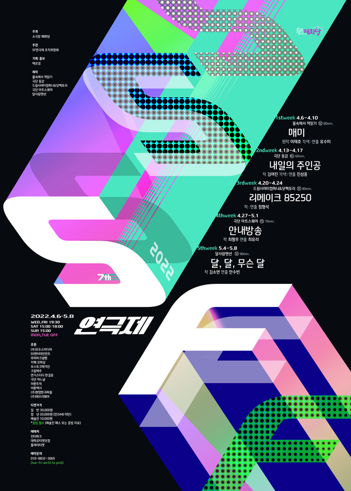 올해로 제 7회를 맞이하는 SF연극제는 소극장 혜화당이 최초로 선보인 페스티벌로 해를 거듭하며 SF마니아들의 호평을 이끌어내며 소극장 혜화당의 대표 장르 연극 축제로 자리매김 했다.