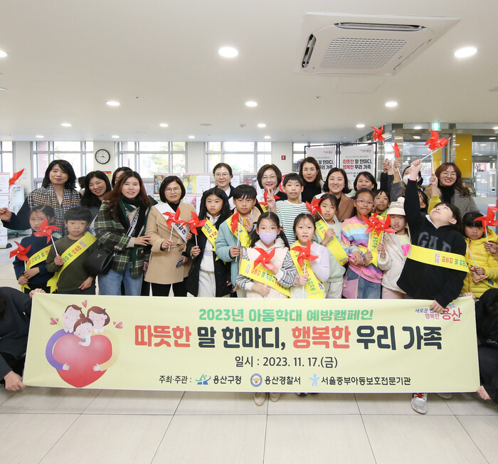 [시민일보 = 홍덕표 기자] 서울 용산구(구청장 박희영)는 ‘아동학대 예방의 날(11월19일)’을 맞아 최근 용산꿈나무종합타운 일대에서 유관기관과 함께 아동학대 예방 캠페인을 전개했다.