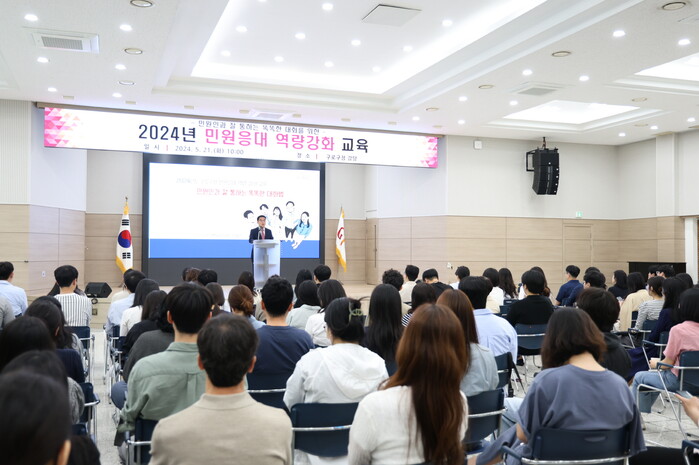 [시민일보 = 이대우 기자] 서울 구로구(문헌일 구청장)가 최근 7급 이하 직원 400여 명을 대상으로 민원응대 역량강화 교육을 실시했다.